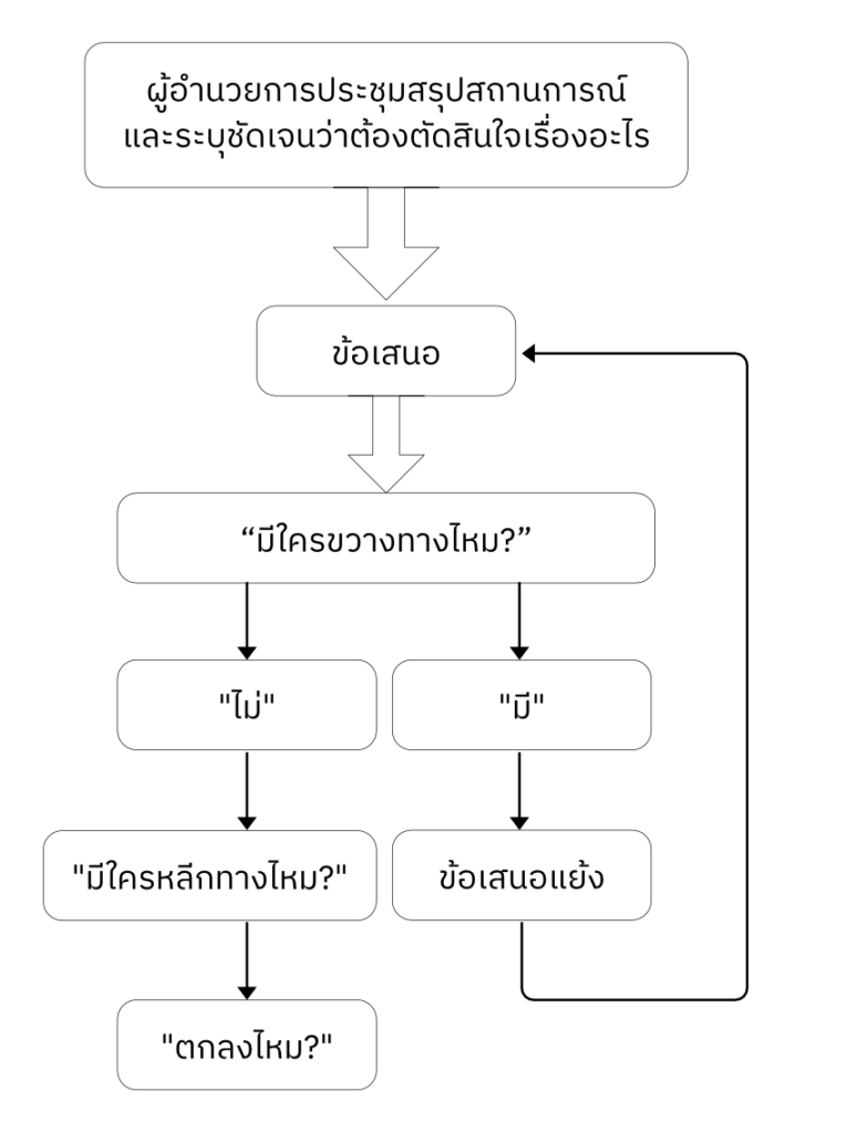 พัฒนาโครงสร้างการตัดสินใจ กำหนดตัวบุคคลหรือทำบัตรให้ทีมงานทั้งหมด แจกแจงบทบาทหรือพื้นที่ความรับผิดชอบ