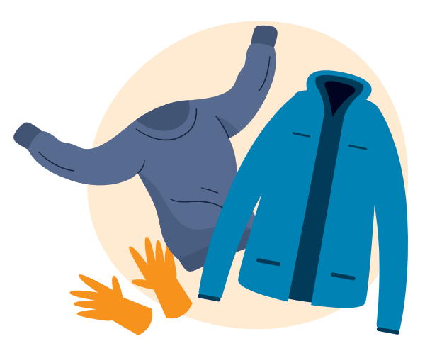 ใส่เสื้อผ้าบางๆ หลายๆ ชั้น กางเกงขายาวและเสื้อผ้ากันน้ำ ควรใส่เสื้อผ้ามากชิ้นกว่าความจำเป็น พอร้อนค่อยถอดออก ผลัดเสื้อผ้าชั้นนอกออกเมื่อโดนแก๊สน้ำตา เสื้อแขนยาวปกปิดผิวหนังป้องกันแก๊สน้ำตาและสเปรย์พริกไทย