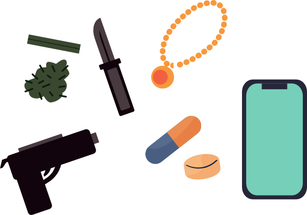 - สิ่งที่ใช้เป็นอาวุธได้ (อะไรก็ตามที่ปลายแหลม เช่น มีด กรรไกร มีดโกน ไขควง)