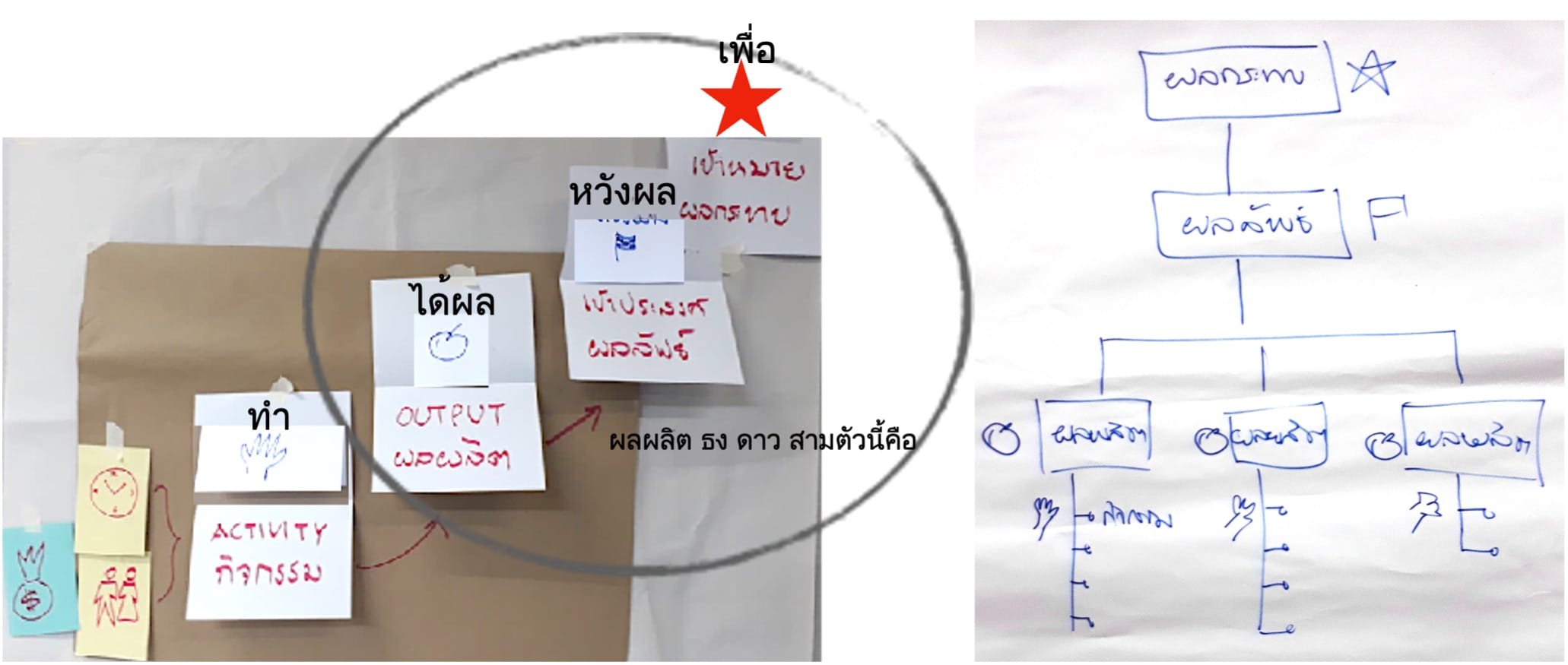หรือ output คือเป้าหมายเชิงรูปธรรม จับต้องได้เป็นชิ้นเป็นอัน อยู่ในอาณัติและการควบคุมของเรา