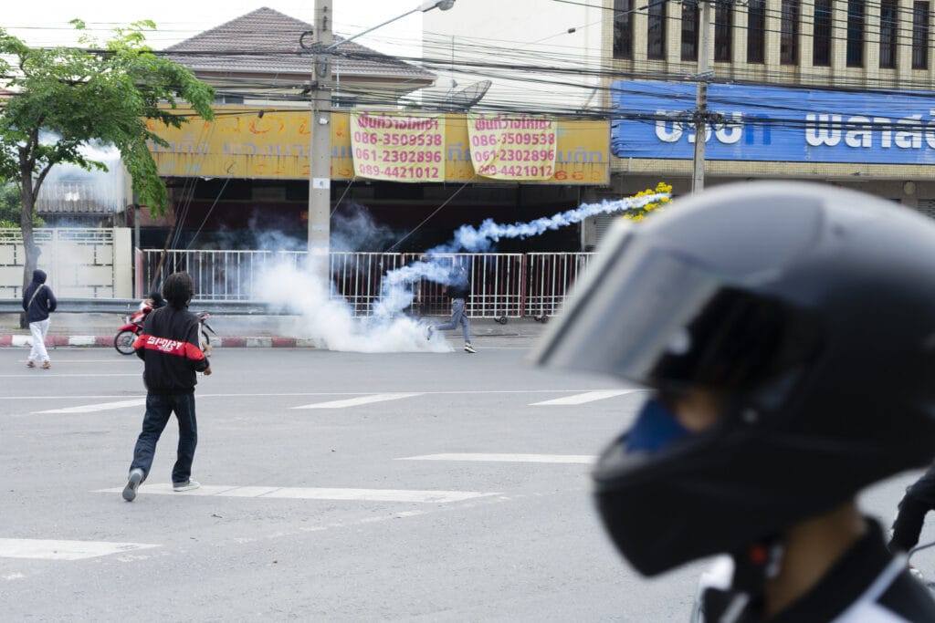 โดยหลักแล้วการฉีดแก๊สน้ำตาเป็นหนึ่งในขั้นตอนการสลายการชุมนุม และภายหลังจากเจ้าหน้าที่ใช้แก๊สน้ำตาแล้ว สิ่งที่เจ้าหน้าที่จะใช้ในลำดับถัดไปคือกระสุนยางโดยมีวัตถุประสงค์เพื่อสลายการชุมนุมนำไปสู่การควบคุมตัวผู้ชุมนุม สถานการณ์ที่ชุลมุนนั้นผู้จัดชุมนุมควรสื่อสารกับมวลชน อาจบอกเส้นทางที่ปลอดภัยสำหรับผู้ชุมนุมที่ไม่พร้อมเผชิญหน้าหรือต้องการเลี่ยงการปะทะ ซึ่งเส้นทางที่ใช้ในการออกจากพื้นที่ชุมนุนนั้นผู้จัดต้องสำรวจหรือแน่ใจว่าสามารถใช้เส้นทางนั้นได้อย่างปลอดภัย เช่น เส้นทางนั้นไม่ได้ถูกเจ้าหน้าที่ปิดล้อมไว้ หรือเป็นจุดที่เจ้าหน้าที่ใช้รวมกองกำลัง หรือเป็นเส้นทางที่สามารถใช้สัญจรไปมาได้