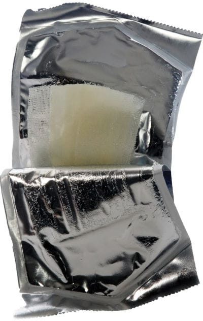 เป็นผ้าก๊อซปิดแผลเคลือบด้วยของเหลวที่มีคุณสมบัติฆ่าเชื้อโรค หากมีแผลที่เกิดจากการโดนของแข็งกระทบก็สามารถใช้ผ้าก็อซนี้เช็ดทำความสะอาดแผลได้ทันที ส่วนถุงฟอยด์ที่ห่อมานั้นก็ยังสามารถนำไปทำเป็นวัสดุสำหรับปิดแผล (Occlusive Dressing) ได้อีกเช่นกัน (อ้างอิงจากคลิปนี้วินาทีที่ 08.06-08.30 https://web.facebook.com/tacticalMedicool/videos/218119539886933)