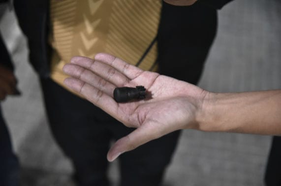 ตัวอย่างหัวกระสุนยางที่ตกอยู่ในพื้นที่ที่มีการสลายการชุมนุม