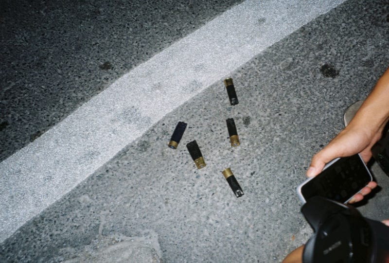 ตัวอย่างปลอกกระสุนยางที่ตกอยู่ในพื้นที่ที่มีการการสลายการชุมนุม