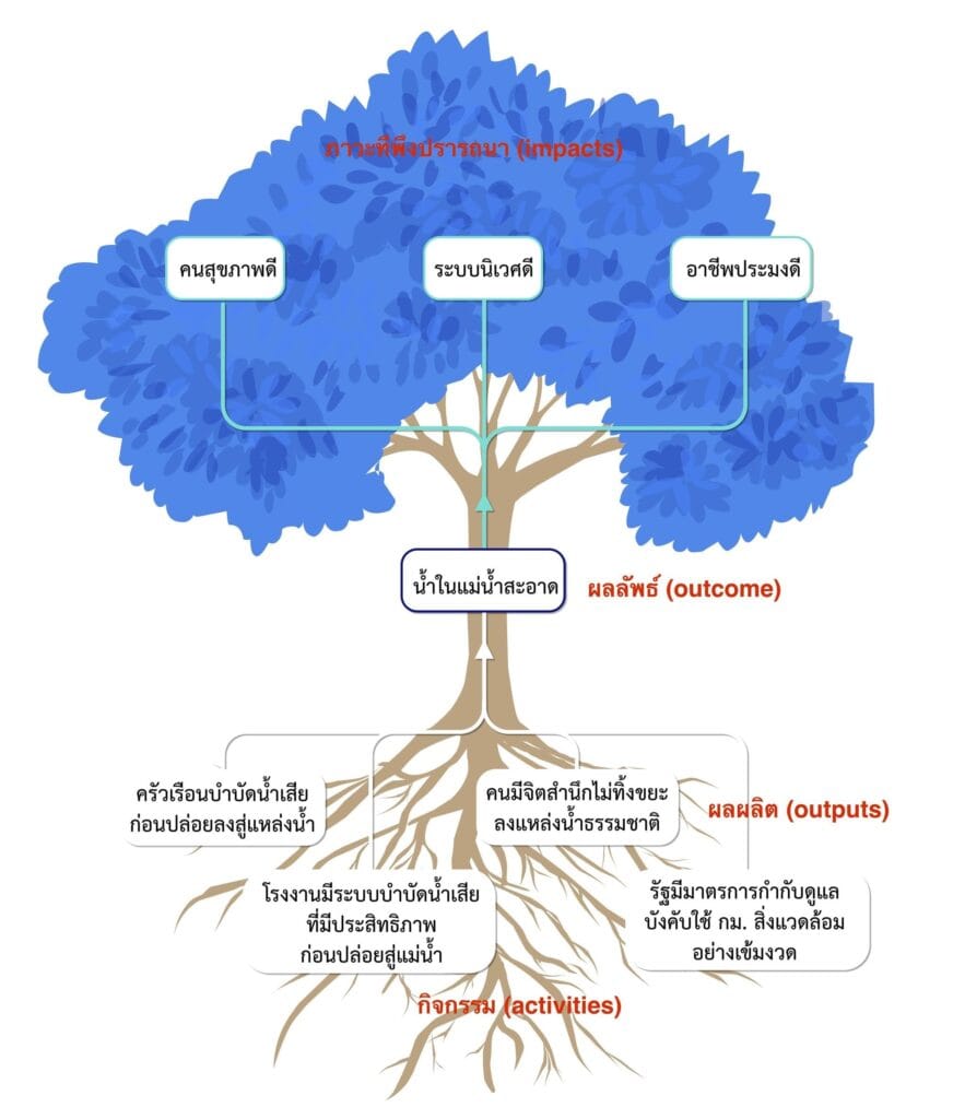 ราก คือผลผลิตที่จะนำไปสู่ผลลัพธ์ อันประกอบด้วยชุดกิจกรรมต่างๆ (outputs)