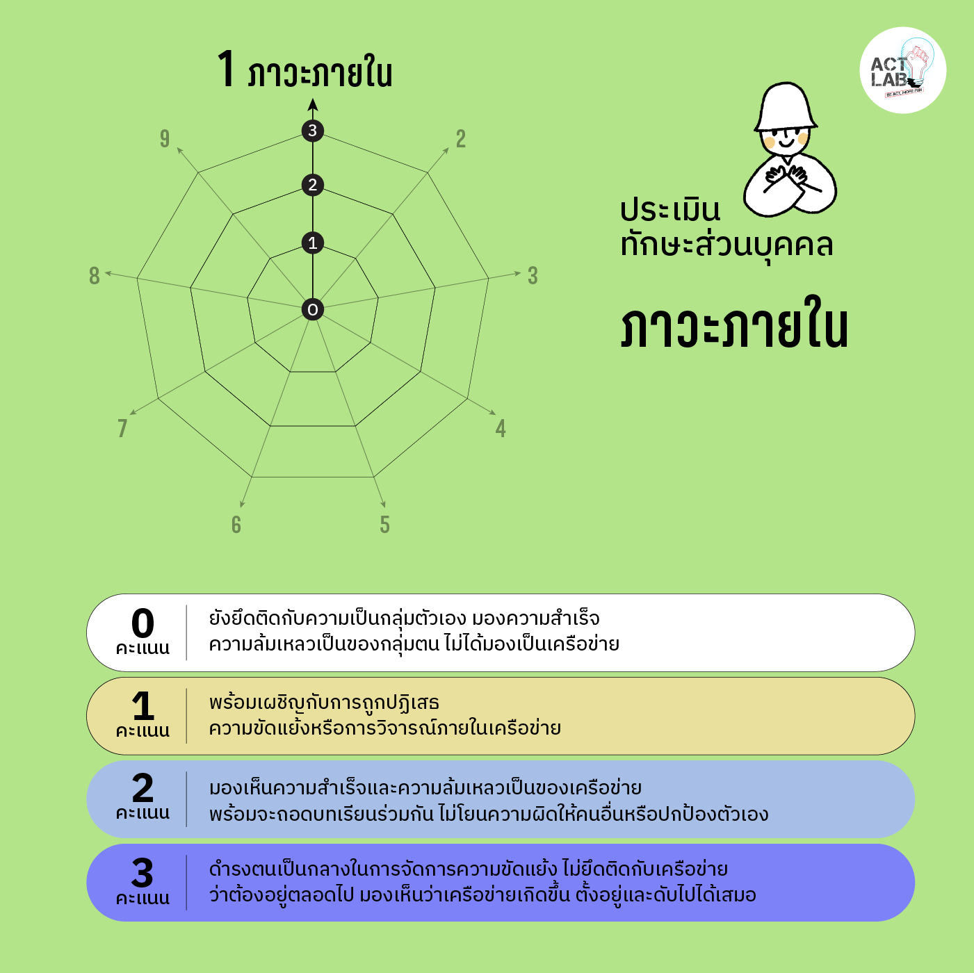 ด้านล่างนี้เป็นแบบประเมินเก้าค่าพลังช่างเชื่อม แตะหรือคลิก 0-3 ในแต่ละข้อที่ตรงกับสถานะปัจจุบันของเรามากที่สุด